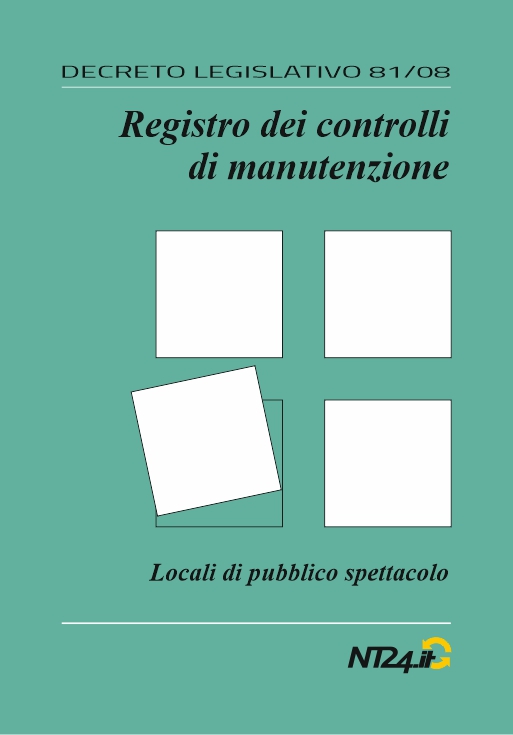 In applicazione dell’articolo 86 del DLgs 81/08, gli impianti elettrici devono essere sottoposti a “controlli di manutenzione”; L’esito dei controlli deve essere verbalizzato e tenuto a disposizione dell’autorità di vigilanza. La mancanza di tale documentazione è una violazione di legge ed è sanzionata ai sensi dell’articolo 87 del suddetto Decreto. I registri di NT24 pronti all’uso consentono di adempire a tale obbligo. Il registro per i locali di pubblico spettacolo soddisfa le prescrizioni del DLgs 81/08 e della sezione 752 della Norma CEI 64-8.